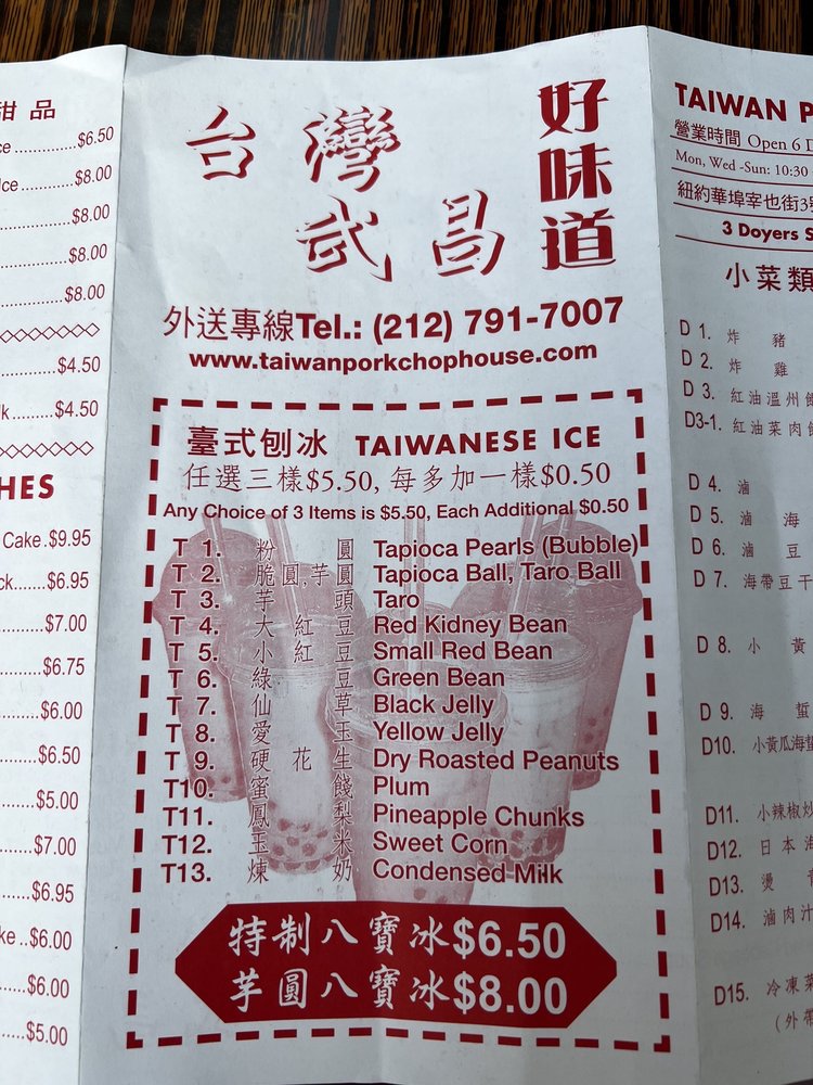 Taiwan Pork Chop House is a Taiwanese-Chinese noodle restaurant located in New York City's Chinatown. Known for its crispy and juicy pork chops, chewy noodles, and flavorful soups, this spot offers a variety of dishes that impress customers with both taste and value. The salt and pepper chicken and beef noodle soup are just some of the highlights that keep patrons coming back for more. Despite being a cash-only establishment, the fast service, friendly staff, and affordable prices make Taiwan Pork Chop House a must-visit for those craving authentic Taiwanese flavors. The chaotic yet bustling atmosphere adds to the charm of this no-frills eatery, providing a truly immersive dining experience for food enthusiasts seeking a taste of traditional Taiwanese cuisine.